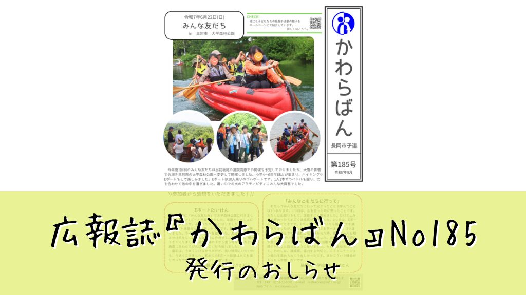 長岡市子連広報誌『かわらばん』185号発行のお知らせ お知らせ・活動予定 X Facebook はてブ LINE コピー 2025.09.28 長岡市子連広報誌『かわらばん』185号を発行いたしました。参加した子どもたちから頂いた感想も掲載しています。ぜひご覧ください。 PDF版はこちら