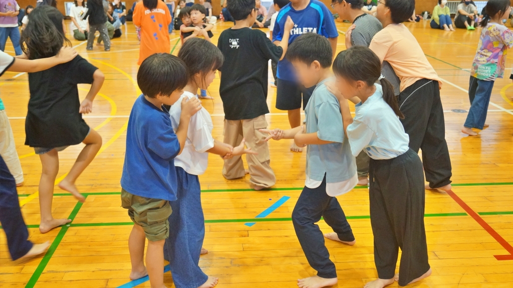 大人数プラス屋内ということでゲームでは普段と少し変更して『むかでじゃんけん』を行いました。大人も子どももじゃんけんを前に真剣勝負。果たして最後の勝者はどっちだったでしょう。