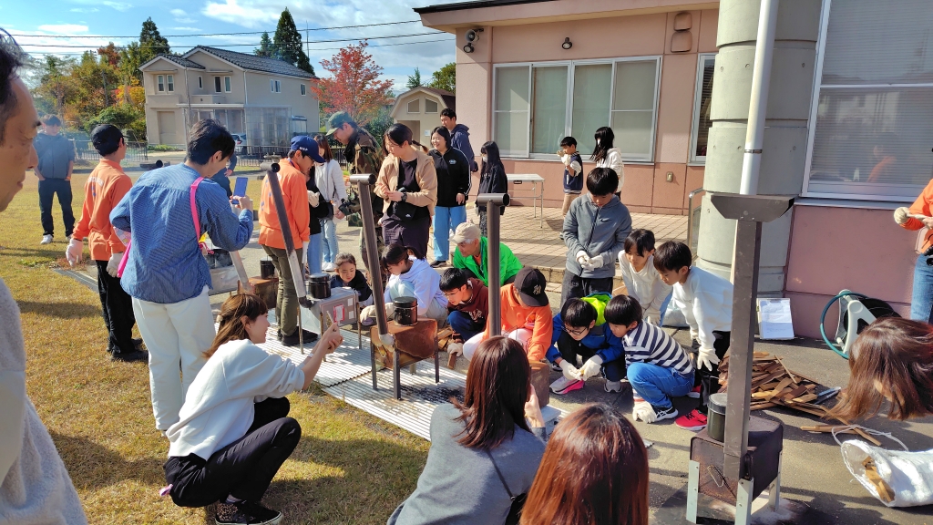 豚汁は具材のカットから、かまどの火起こしまで子どもたちが挑戦。