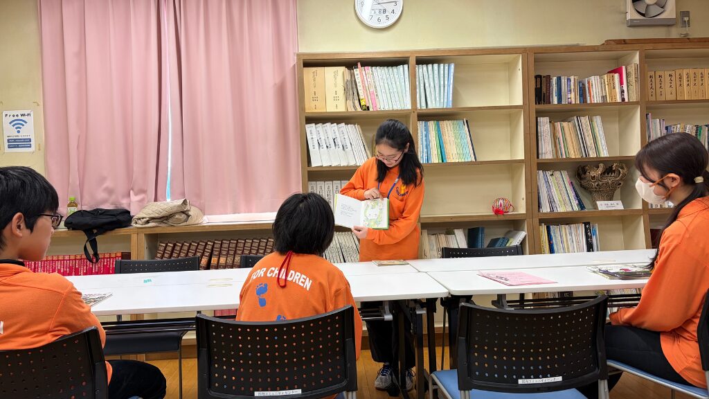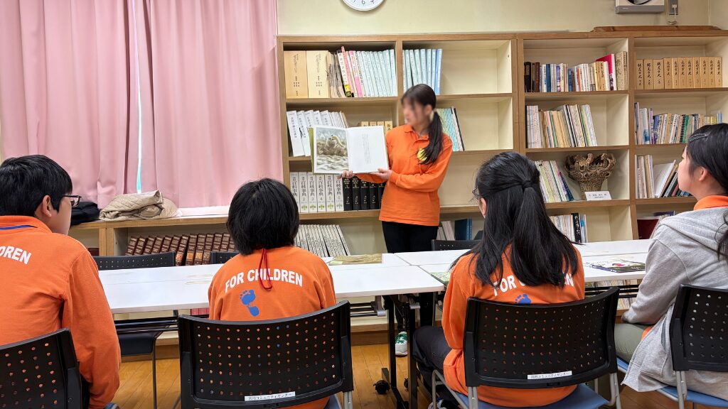 絵本の読み聞かせでは、声のトーンや絵本の持ち方などを学び講師から用意していただいた絵本から好きなものを選びました。