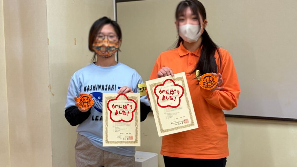 今回の研修会で長岡市ユースリーダー1名と柏崎市ジュニアリーダー1名が必要単位を修了し、修了証とワッペンをもらいました。
